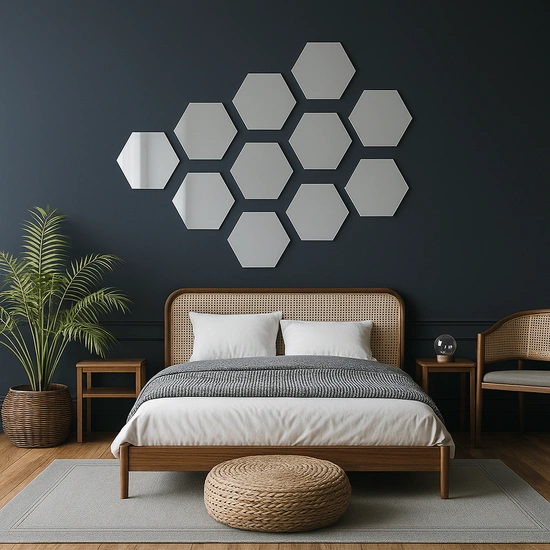 Wprowadź do swojego wnętrza nowoczesną elegancję z naszymi ekskluzywnymi modułowymi lustrami w kształcie heksagonu.